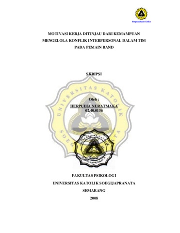 NURATMAKA, HERPUDIA (2008) MOTIVASI KERJA DITINJAU DARI KEMAMPUAN MENGELOLA KONFLIK INTERPERSONAL DALAM TIM PADA PEMAIN BAND. Other thesis, Prodi Psikologi Unika Soegijapranata.