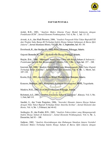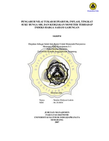 Lukito, Natalia Mulyani (2007) PENGARUH NILAI TUKAR RUPIAH/US$, INFLASI, TINGKAT SUKU BUNGA SBI, DAN KEBIJAKAN MONETER TERHADAP INDEKS HARGA SAHAM GABUNGAN. Other thesis, Prodi Manajemen Unika Soegijapranata.