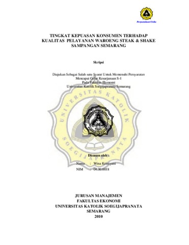 Kristiyani, Wina (2010) TINGKAT KEPUASAN KONSUMEN TERHADAP KUALITAS PELAYANAN WAROENG STEAK & SHAKE SAMPANGAN SEMARANG. Other thesis, Prodi Manajemen Unika Soegijapranata.