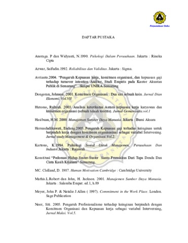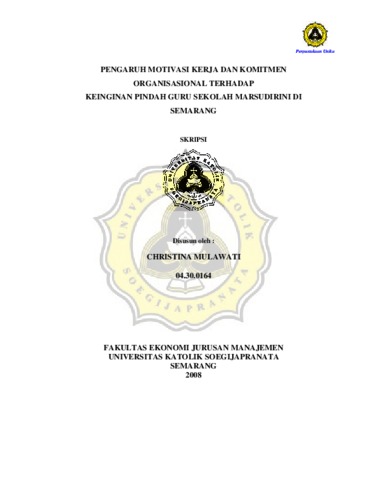 MULAWATI, CHRISTINA (2008) PENGARUH MOTIVASI KERJA DAN KOMITMEN ORGANISASIONAL TERHADAP KEINGINAN PINDAH GURU SEKOLAH MARSUDIRINI DI SEMARANG. Other thesis, Prodi Manajemen Unika Soegijapranata.
