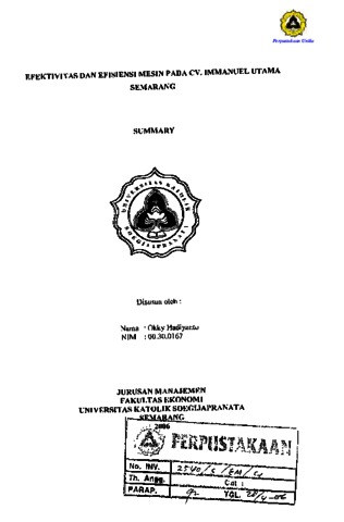 HADIYANTO, OKKY (2006) EFEKTIVITAS DAN EFISIENSI MESIN PADA CV. IMMANUEL UTAMA SEMARANG. Other thesis, Fakultas Ekonomi Dan Bisnis, Universitas Katolik Soegijapranata.