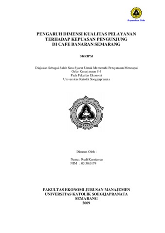 Kurniawan, Rudi (2009) PENGARUH DIMENSI KUALITAS PELAYANAN TERHADAP KEPUASAN PENGUNJUNG DI CAFE BANARAN SEMARANG. Other thesis, Prodi Manajemen Unika Soegijapranata.