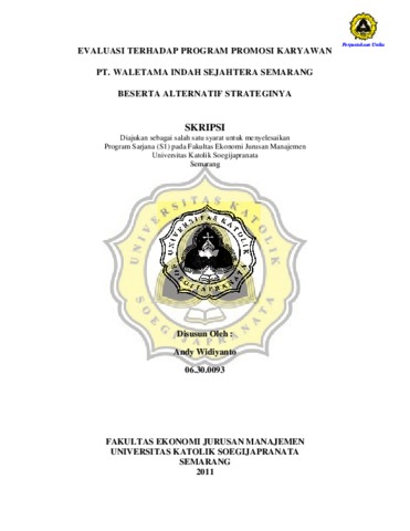 WIDIYANTO, ANDY (2011) EVALUASI TERHADAP PROGRAM PROMOSI KARYAWAN PT. WALETAMA INDAH SEJAHTERA SEMARANG BESERTA ALTERNATIF STRATEGINYA. Other thesis, Prodi Manajemen Unika Soegijapranata.