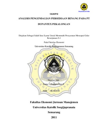 NICO P., PRADIPTA (2011) ANALISIS PENGENDALIAN PERSEDIAAN BENANG PADA PT DUPANTEX PEKALONGAN. Other thesis, Prodi Manajemen Unika Soegijapranata.