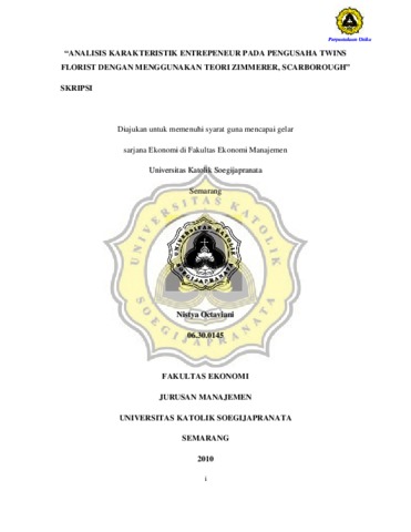 OKTAVIANI, NISTYA (2010) ANALISIS KARAKTERISTIK ENTREPENEUR PADA PENGUSAHA TWINS FLORIST DENGAN MENGGUNAKAN TEORI ZIMMERER, SCARBOROUGH”. Other thesis, Prodi Manajemen Unika Soegijapranata.