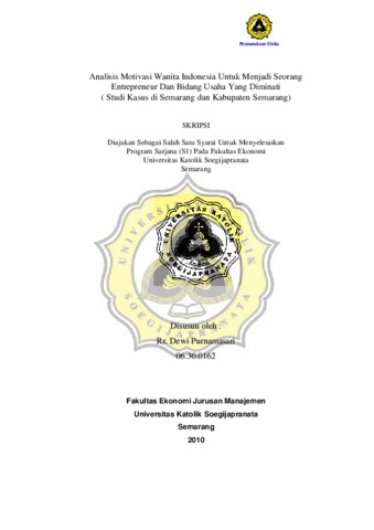 PURNAMASARI, Rr. DEWI (2010) Analisis Motivasi Wanita Indonesia Untuk Menjadi Seorang Entrepreneur Dan Bidang Usaha Yang Diminati ( Studi Kasus di Semarang dan Kabupaten Semarang). Other thesis, Prodi Manajemen Unika Soegijapranata.