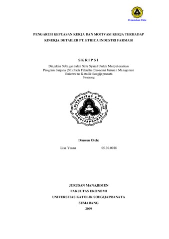 Kinerja atau prestasi kerja seorang karyawan pada dasarnya adalah hasil kerja seseorang karyawan selama periode tertentu dibandingkan dengan kemungkinan, misalnya standar, target/sasaran atau kinerja yang telah ditentukan terlebih dahulu dan telah di sepakati bersama. PT. Ethica Industri Farmasi merupakan perusahaan yang bergerak di bidang distributor obat atau farmasi. Penelitian ini memfokuskan pada kinerja para detailer sebab mereka memiliki berbagai kendala dan kesulitan dalam menjalankan tugasnya misalnya pada saat menemui dokter, gampang-gampang sulit, menunggu jam kerja praktek dokter melelahkan dan membutuhkan kesabaran, dan sebagainya. Perumusan masalah dalam penelitian ini adalah: (1) Bagaimana persepsi responden terhadap kepuasan kerja, motivasi kerja, dan kinerja detailer PT. Ethica Industri Farmasi? (2) Bagaimana pengaruh kepuasan kerja terhadap kinerja para detailer PT. Ethica Industri Farmasi? (3) Bagaimana pengaruh motivasi kerja terhadap kinerja para detailer PT. Ethica Industri Farmasi? (4) Bagaimana pengaruh kepuasan kerja dan motivasi kerja terhadap kinerja para detailer PT. Ethica Industri Farmasi? ...