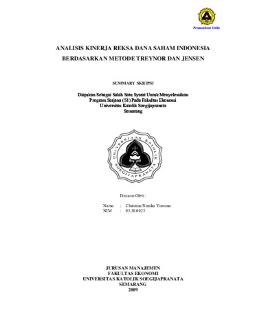 Yuwono, Christina Natalia (2009) ANALISIS KINERJA REKSA DANA SAHAM INDONESIA BERDASARKAN METODE TREYNOR DAN JENSEN. Other thesis, Fakultas Ekonomi dan Bisnis Unika Soegijapranata.