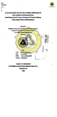 AMANUYASA, ADITYA (1998) ANALISIS KORELASI ANTARA KINERJA PERUSAHAAN DAN HARGA SAHAM BIASANYA (STUDI KASUS PADA PT. SEMEN GRESIK DAN PT. SEMEN CIBINONG YANG LISTING DI BURSA EFEK SURABAYA). Other thesis, Prodi Manajemen Unika Soegijapranata.