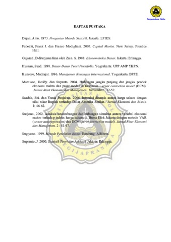 Penelitian ini berdasarkan pada kondi si makroekonomi di Indonesia yang akhir-akhir ini menunjukkan adanya peningkatan. Indikator makroekonomi yang diteliti adalah IHSG dan kurs Rupiah terhadap Dolar Amerika Serikat karena pada penelitian sebelumya memiliki kesimpulan yang berbeda-beda. Maka peneliti tertarik untuk melakukan penelitian kembali mengenai hubungan antara perubahan kurs rupiah terhadap Dolar Amerika Serikat dengan perubahan harga saham.