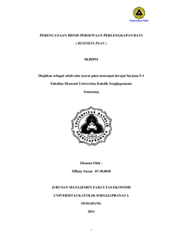 SUSAN, TIFFANY (2011) PERENCANAAN BISNIS PERSEWAAN PERLENGKAPAN BAYI ( BUSINESS PLAN ). Other thesis, Prodi Manajemen Unika Soegijapranata.