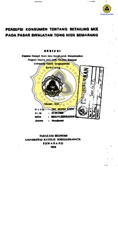 LIEM, OEI HONG (1999) PERSEPSI KONSUMEN TENTANG RETAILING MIX PADA PASAR SWALAYAN TONG HIEN SEMARANG. Other thesis, Prodi Manajemen Unika Soegijapranata.