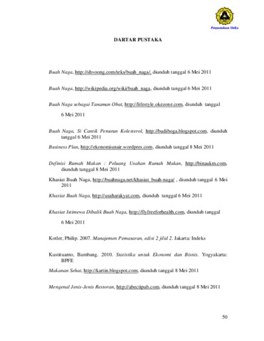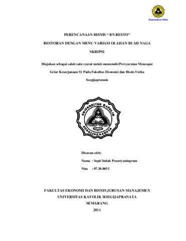 PRASETYANINGRUM, SEPTI INDAH (2011) PERENCANAAN BISNIS “ BN RESTO” RESTORAN DENGAN MENU VARIASI OLAHAN BUAH NAGA. Other thesis, Prodi Manajemen Unika Soegijapranata.
