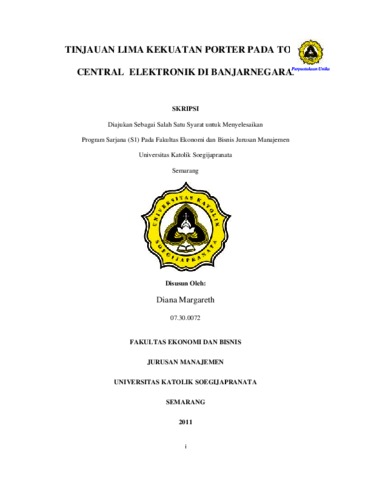 MARGARETH, DIANA (2011) TINJAUAN LIMA KEKUATAN PORTER PADA TOKO CENTRAL ELEKTRONIK DI BANJARNEGARA. Other thesis, Prodi Manajemen Unika Soegijapranata.