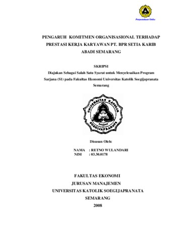 WULANDARI, RETNO (2008) PENGARUH KOMITMEN ORGANISASIONAL TERHADAP PRESTASI KERJA KARYAWAN PT. BPR SETIA KARIB ABADI SEMARANG. Other thesis, Prodi Manajemen Unika Soegijapranata.