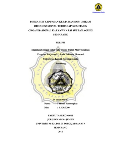 Pamungkas, Irwan (2010) PENGARUH KEPUASAN KERJA DAN KOMUNIKASI ORGANISASIONAL TERHADAP KOMITMEN ORGANISASIONAL KARYAWAN RSI SULTAN AGUNG SEMARANG. Other thesis, Prodi Manajemen Unika Soegijapranata.