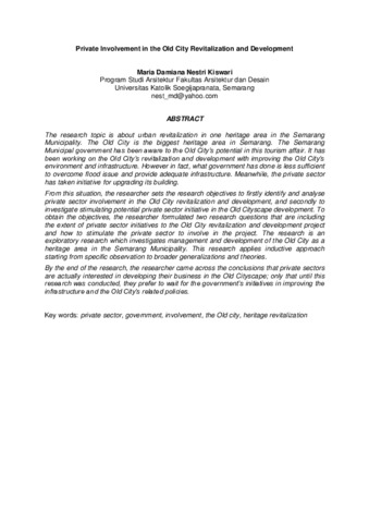Kiswari, Maria Damiana Nestri Private Involvement in the Old City Revitalization and Development. TESA Arsitektur, XII (1). pp. 70-83. ISSN 1410-6094