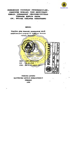 HENDRIYANTI, ANNE (1999) HUBUNGAN TINGKAT PENGHASILAN, JAMINAN SOSIAL, DAN MOTIVASI KERJA TERHADAP PRODUKTIVITAS TENAGA KERJA PADA CV. PRIMA SELERA SEMARANG. Other thesis, Prodi Manajemen Unika Soegijapranata.