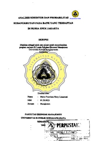 LIANAWATI, MARIA FRANSISCA NOVY (2006) ANALISIS KREDITUR DAN PROBABILITAS KEBANGKRUTAN PADA BANK YANG TERDAFTAR DI BURSA EFEK JAKARTA. Other thesis, Prodi Manajemen Unika Soegijapranata.