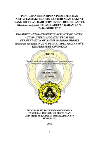 PENGUJIAN KEMAMPUAN PROBIOTIK DAN AKTIVITAS BAKTERIOSIN BAKTERI ASAM LAKTAT YANG DIISOLASI DARI FERMENTASI REBUNG AMPEL (Bambusa vulgaris) DALAM LARUTAN GARAM 2,5 % PADA SUHU 300 C