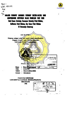 PUSPANINGRUM, RIANA (1996) ANALISIS PENDAPAT KONSUMEN TERHADAP FAKTOR-FAKTOR YANG MEMPENGARUHI KEPUTUSAN DALAM PEMBELIAN FAST FOOD STUDI KASUS TERHADAP KONSUMEN KENTUCKY FRIED CHICKEN, CALIFORNIA FRIED CHICKEN, DAN TEXAS FRIED CHICKEN DI KOTAMADYA SEMARANG. Other thesis, Prodi Manajemen Unika Soegijapranata.