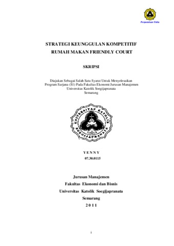 YENNY, - (2011) STRATEGI KEUNGGULAN KOMPETITIF RUMAH MAKAN FRIENDLY COURT. Other thesis, Prodi Manajemen Unika Soegijapranata.