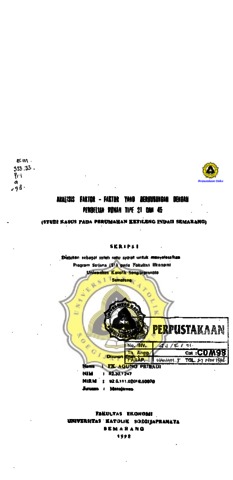 PRIBADI, FX. AGUNG (1998) ANALISIS FAKTOR-FAKTOR YANG BERHUBUNGAN DENGAN PEMBELIAN RUMAH TIPE 21 DAN 45 (STUDI KASUS PADA PERUMAHAN KETILENG INDAH SEMARANG). Other thesis, Prodi Manajemen Unika Soegijapranata.