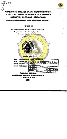 ANALISIS MOTIVASI YANG MEMPENGARUHI LOYALITAS KERJA MANAJER DI KAWASAN INDUSTRI TERBOYO SEMARANG (TINJAUAN BERDASARKAN TEORI KEBUTUHAN MASLOW)