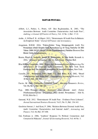 Meilina, - (2015) Analisis Pengaruh Koneksi Politik, Karakteristik Dewan Komisaris, Karakteristik Komite Audit, Karakteristik Perusahaan dan Karakteristik Auditor Terhadap Audit Fee Diajukan untuk memenuhi syarat guna mencapai gelar Sarjana Akuntansi di Fakultas Ekonomi dan Bisnis i Skripsi HALAMAN JUDUL Eksternal Pada Perusahaan yang Terdaftar di Bursa Efek Indonesia. Other thesis, Fakultas Ekonomi Dan Bisnis, Universitas Katolik Soegijapranata Semarang.