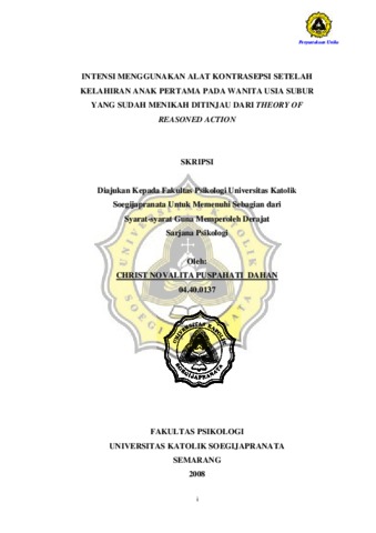 DAHAN, CHRIST NOVALITA PUSPAHATI (2008) INTENSI MENGGUNAKAN ALAT KONTRASEPSI SETELAH KELAHIRAN ANAK PERTAMA PADA WANITA USIA SUBUR YANG SUDAH MENIKAH DITINJAU DARI THEORY OF REASONED ACTION. Other thesis, Prodi Psikologi Unika Soegijapranata.