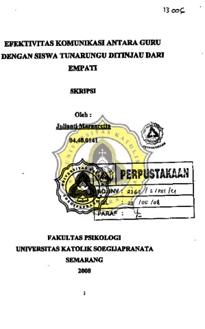 MARGARETTA, JULIANTI (2008) EFEKTIFITAS KOMUNIKASI ANTARA GURU DENGAN SISWA TUNARUNGU DITINJAU DARI EMPATI. Other thesis, Prodi Psikologi Unika Soegijapranata.