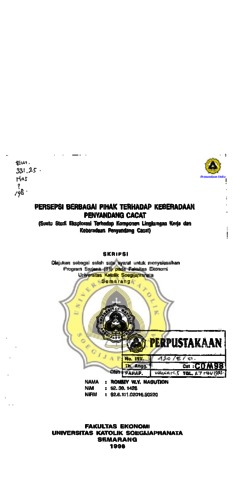 NASUTION, ROMMY WY (1998) PERSEPSI BERBAGAI PIHAK TERHADAP KEBERADAAN PENYANDANG CACAT (SUATU STUDI EKSPLORASI TERHADAP KOMPONEN LINGKUNGAN KERJA DAN KEBERADAAN PENYANDANG CACAT). Other thesis, Prodi Manajemen Unika Soegijapranata.