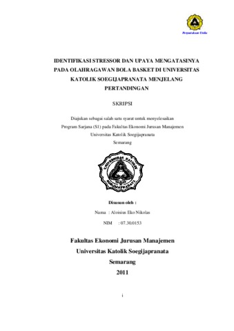 NIKOLAS, ALOISIUS EKO (2011) IDENTIFIKASI STRESSOR DAN UPAYA MENGATASINYA PADA OLAHRAGAWAN BOLA BASKET DI UNIVERSITAS KATOLIK SOEGIJAPRANATA MENJELANG PERTANDINGAN. Other thesis, Prodi Manajemen Unika Soegijapranata.