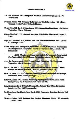 Pada nlaSH kcmaj uan tckhnologi dan persaingan pasar yang kompetitif ini, setiap pclaku bisnis yang ingin memenangkan persaingan hams memberikan perhatian dan penerapan strategi pemasaran yang tepat dan pemahaman yang teIjadi pada lingkungan pemasaran, konsurnen adalah salah satu peJak'l dalanl lingkungan pemasaran, perusahaan harus rnemperhatikan ,memahami dan menanggapi dengan cepat pcrubahan kebutuhan dan kcinginan k~nsumen untuk dapat rncnjadi pemenang dalum pcrsaingan yang tepat. Untuk memilih pasar ~~~~melayaniA a de gan baik, perusahaan hams mcncrapkan pasar sasaran karcna pcJnbauran sasaran sangat mcmbantu perusahaan dalam menelnukan pel g1JCmasarannya. Medurut Kotle ~2002 : 292), pemasaran sasaran mcngharuskan 6emasar melakuKan tiga langkah pertarlla : 1) segmentasi pasar yaitu mCllgidcntifikasi dan mernbentuk ke1ompo' per-nbeli yang berbeda yang mungkin meminta proouk, 2) penerapan pa ar sasaran yaitu me Ii . satu atau lebih scgmcn pasar un ' dimasuKi, dan 3) ~ ctapan posisi PHsar Y(1.iJ.u mcmbedakan, mengkomunikasika maniaat utalna yang me.-; bedakan produk dal pasar. Dengan pemasaran sasa~ rusaHaan dapat 'nbagi pasar yang luas ke dalam beberapa scgmcll, membidill • satu atau lcbih segmcn, kcmudian mcm posisikan produk berdasarkan keungg Ian dan pemedaan yang dimiliki oleh ~roduk t(;fSebut. P~nelitian ini berusaha tuk mengetahui posisi rokok k~etek Djarum 76 ~1engan mcnggunak peta ~rsepsi -liban<ilingkan dcngan ·~in g-pesaingnya menurut perepsi peFO ok terha aIt atfibut~atcibut n;)Kok. MetJ. t~llihui posisi yang ditcmpati rokok krclc Djarum 7 dlantara para pcsa' ng-p~saingnya sangat membantu PT Djarum pusat untuk menentu an tindakan apa ang hams dilakukan di masa mendatang dalam hub gann~a dengan stratew ppsitl(J)nlng. Untuk itu Djarwn perlu mengetahui posisi prodUknya di ben' k kons men diBandingkan dengan para pesaingnya. Untuk itu PT Djarum perlu mengetahui posisi produknya di benak konsumen dibandingkan dengan para pesaingnya. Mellihat atriibut-atribut yang diperkirakan menjadi pertimbangan konsumen dalam merokok khususnya Dhjarwn 76, oleh karena itu peneliti tertL-ik untuk meneliti Iebih lanjut schingga mcngambil judul pcnclitian ANALISIS POSiTIONING ROKOK KRl:..Tl:;K LJ./ARlJA1 76 Bf.;lWASARKAN PHR\,'!:J:)l\,'j KONSlfhtb'N lJl Kl~'CAMA1'AN GAYAMSARI SE,.."fARANG (Studi Kasus Pada Pasar Gayamsari Semarang). Dalam pene1itian ini yang menjadi pcrmasalahan penclitiall adalah dimanakah posisi rokok krete <. Djarum 76 di antara pesaingnya ditinjau dari persepsi konsumen terhadap atribut-atribut yang ditawarkan dengan batasan masala.l-t pa.da : 1. Atribut-atribut pada rokok kretek Djarum 76 yang diteliti berdasarkan hasH prasurvey adalah keterkenalan merek rokok, rasa, kerr.asan, iklan, penjualan cccran, isi, , kcmudahan mcndapat, harga kadar racun dan produsen Penentuan atribut tersebut diperoleh dengan terlebin aahulu mengadakan prasurvei tentang sebab-sebab orang mengkonsnmsi rokok kretek 2. Responden yang diteliti adalah pcrokok Djarum 76 yang juga pemah merasakan rokok Gudang Garam Merah kretek dan Sampoeraa kretek .. Dalrun tinjauan pustaka dijelaskan tentang konsep yang digun:1kan dan definisinya. Ada beberapa konsep dalam tinjauan pustaka yaitu pengertian perna.s&-aIl, perilaku konsumcn, positionin dan pikiran, dcfinisi positioning, produk po~itioning, pcrsepsi, hubWlgan prod uk., positioning dan brain image, kakrakter fisik, pendekatan .. pendekatan daJam melakukan positioning, proses posit:vning, positioning berhubungan dengan atribut-atribut produk, berb~gai cara positioning, positioning dalam bentuk sederhana, pemetaan perseptuaI. Mctodc pcnelitian yang digunakan a<iala etode penelitian kuantitatif dengan menggunakan pengukuran valid'tas';lel'iaoilitas beniaSafJatn korel~si product moment serta Correspondell Analxsis. . Pada pcmbahasan Clikeolukakan mengenai ambaran umWH lokasi pcneliti~ pengelompokan rt spon en berdasarkan jenis kelamin dan pe ~l~ge.an, jenis kelamin . dan urnur scrta jeJlis lamln dan pendidikan, Sdain itu dipapadtan juga tanggapan respondcn tt!rhada atribut. Dalam pemba asan, dikemuk kan pula lasH penelitian dan inteprestasi ~ il penelitian dimana oer ar ~an haSil analisi~ Corresponden Analysis dikclahui : · 1. Posisi masing-, 2. Uji keselaran t I