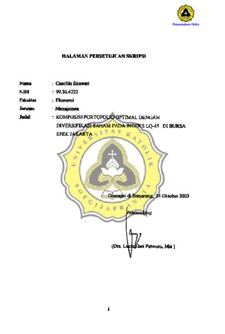 EKAWATI, CAECILIA (2003) KOMPOSISI PORTOFOLIO OPTIMAL DNGAN DIVERSIFIKASI SAHAM PADA INDEKS PQ 45 DI BURSA EFEK JAKARTA. Other thesis, Prodi Manajemen Unika Soegijapranata.