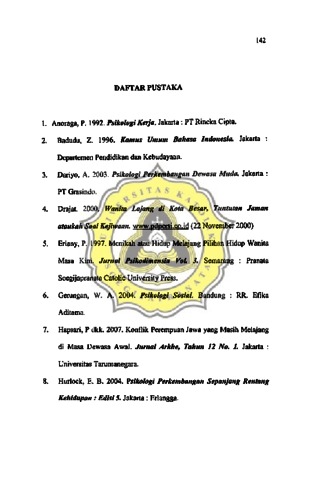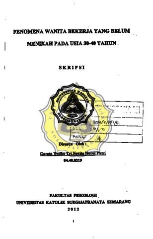 Putri, Garata Yudha Tri Novita Nurul (2012) FENOMENA WANITA BEKERJA YANG BELUM MENIKAH PADA USIA 30 - 40 TAHUN. Other thesis, Prodi Psikologi Unika Soegijapranata.