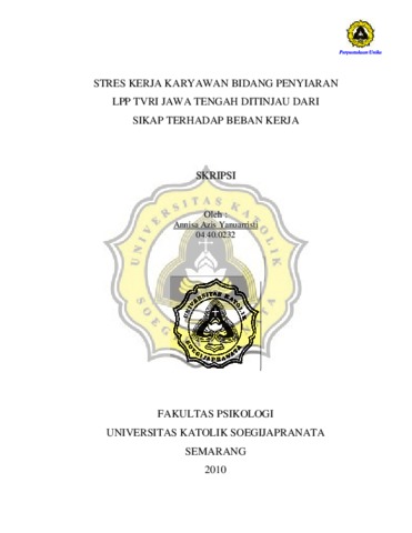 Yanuarristi, Annisa Azis (2009) STRES KERJA KARYAWAN BIDANG PENYIARAN LPP TVRI JAWA TENGAH DITINJAU DARI SIKAP TERHADAP BEBAN KERJA. Other thesis, Prodi Psikologi Unika Soegijapranata.