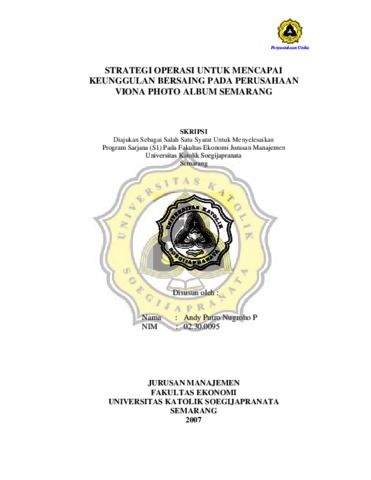 Nugroho, Andy Putro (2007) STRATEGI OPERASI UNTUK MENCAPAI KEUNGGULAN BERSAING PADA PERUSAHAAN VIONA PHOTO ALBUM SEMARANG. Other thesis, Prodi Manajemen Unika Soegijpranata.