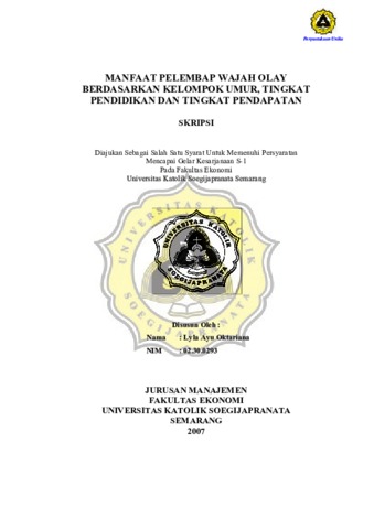 Oktariana, Lyla Ayu (2007) MANFAAT PELEMBAP WAJAH OLAY BERDASARKAN KELOMPOK UMUR, TINGKAT PENDIDIKAN DAN TINGKAT PENDAPATAN. Other thesis, Prodi Manajemen Unika Soegijpranata.