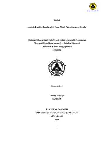 Prasetyo, Danang (2009) Analasis Kualitas Jasa Bengkel Pintu Mobil Putra Semarang Kendal. Other thesis, Prodi Manajemen Unika Soegijpranata.