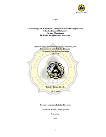 Husodo, Timothy Tandy (2009) Analisis Pengaruh Komunikasi Interpersonal dan Dukungan Sosial terhadap Prestasi Mahasiswa Jurusan Manajemen FE Unika Soegijapranata Semarang. Other thesis, Fakultas Ekonomi dan Bisnis UNIKA Soegijapranata.