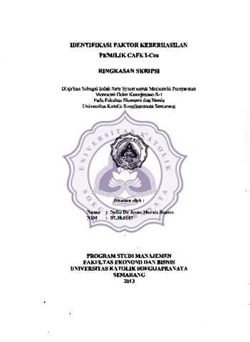 SOARES, NELIO DE JESUS MORAIS (2013) IDENTIFIKASI FAKTOR KEBERHASILAN PEMILIK CAFE I-Cos. Other thesis, Prodi Manajemen Unika Soegijapranata.