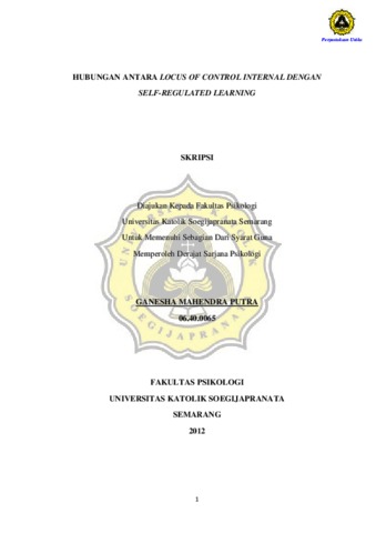 PUTRA, GANESHA MAHENDRA (2012) HUBUNGAN ANTARA LOCUS OF CONTROL INTERNAL DENGAN SELF-REGULATED LEARNING. Other thesis, Prodi Psikologi Unika Soegijapranata Semarang.