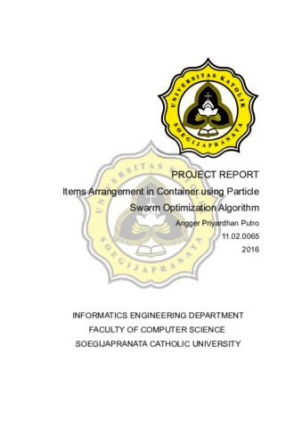 Putro, Angger Priyardhan (2016) Items Arrangement in Container using Particle Swarm Optimization Algorithm. Other thesis, Fakultas Ilmu Komputer UNIKA Soegijapranata Semarang.