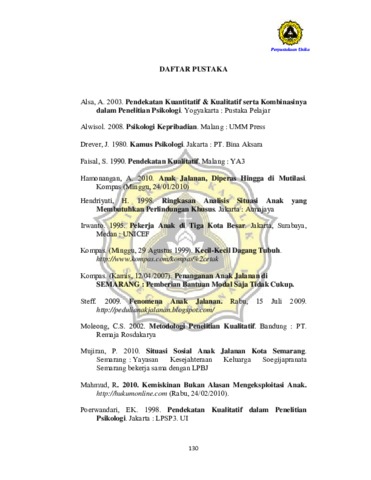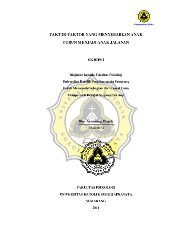 Puspita, Dian Arumning (2011) FAKTOR-FAKTOR YANG MENYEBABKAN ANAK TURUN MENJADI ANAK JALANAN. Other thesis, Prodi Psikologi Unika Soegijapranata.