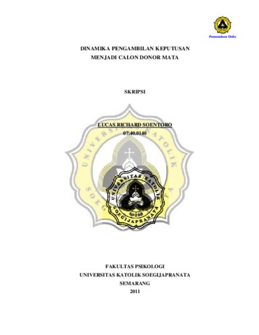 SOENTORO, LUCAS RICHARD (2011) DINAMIKA PENGAMBILAN KEPUTUSAN MENJADI CALON DONOR MATA. Other thesis, Prodi Psikologi Unika Soegijapranata.